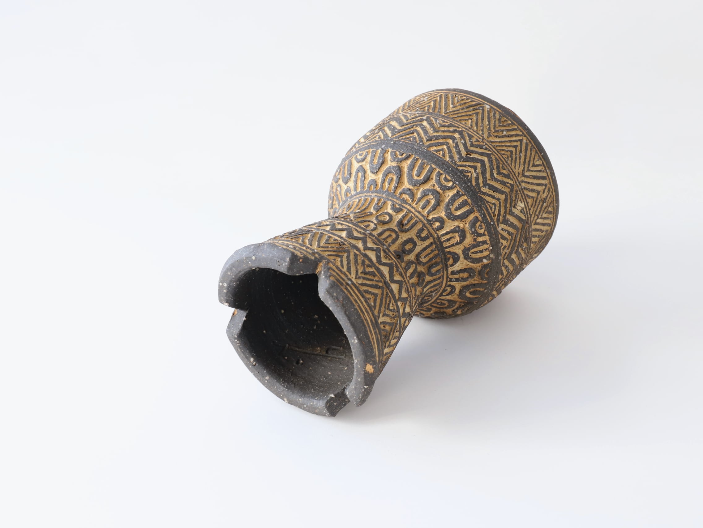 プリミティブな文様を中心としたオリジナルの「刻文」の植木鉢や花器、生活の中で生きる器のほか、