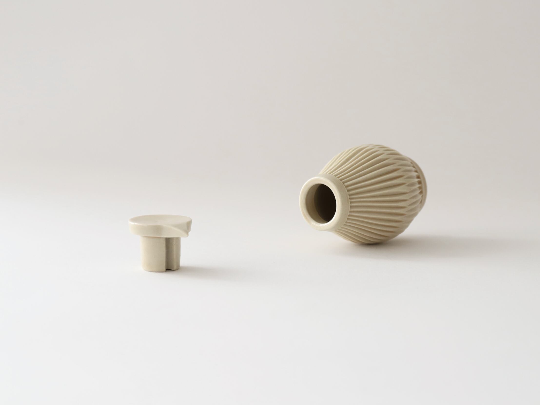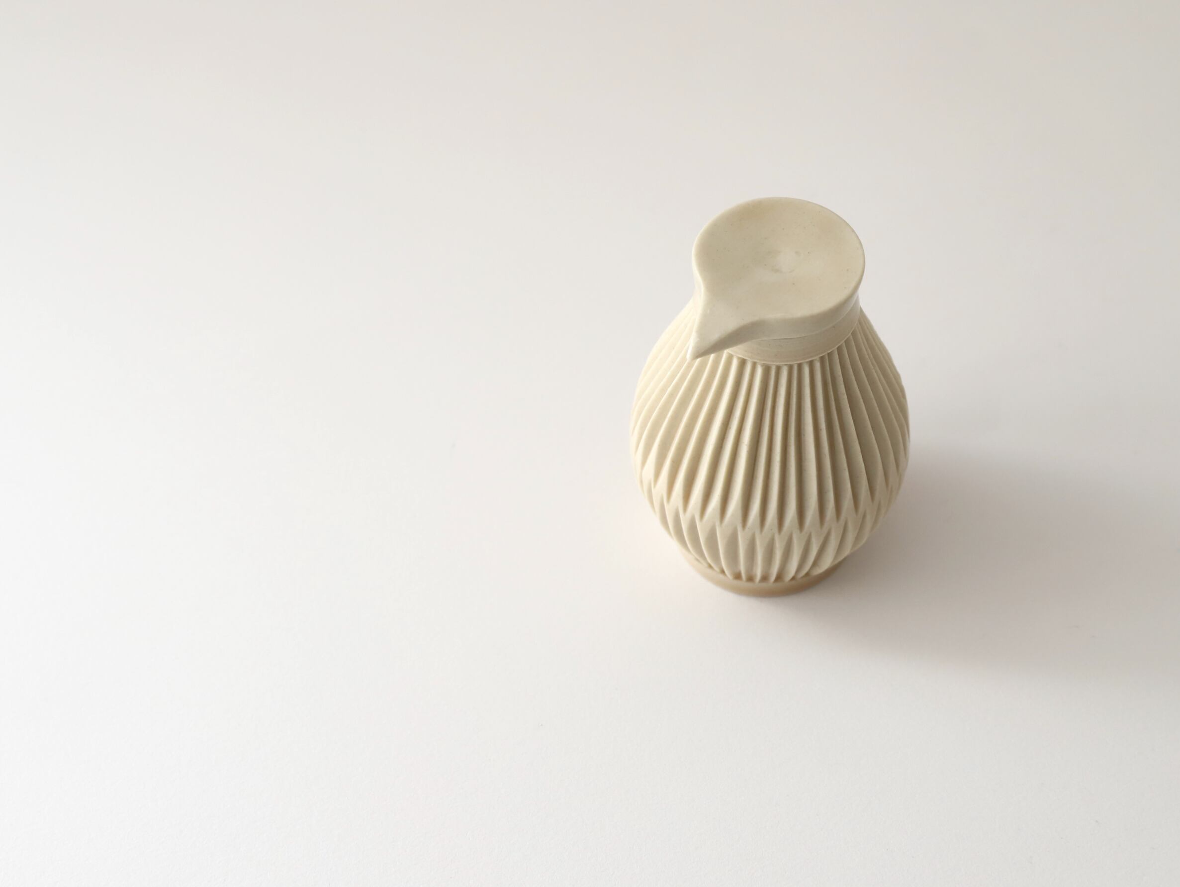 作品によっては緩やかなたわみ、やや尖った部分、釉薬の弾けた部分やピンホール(小さな穴)、