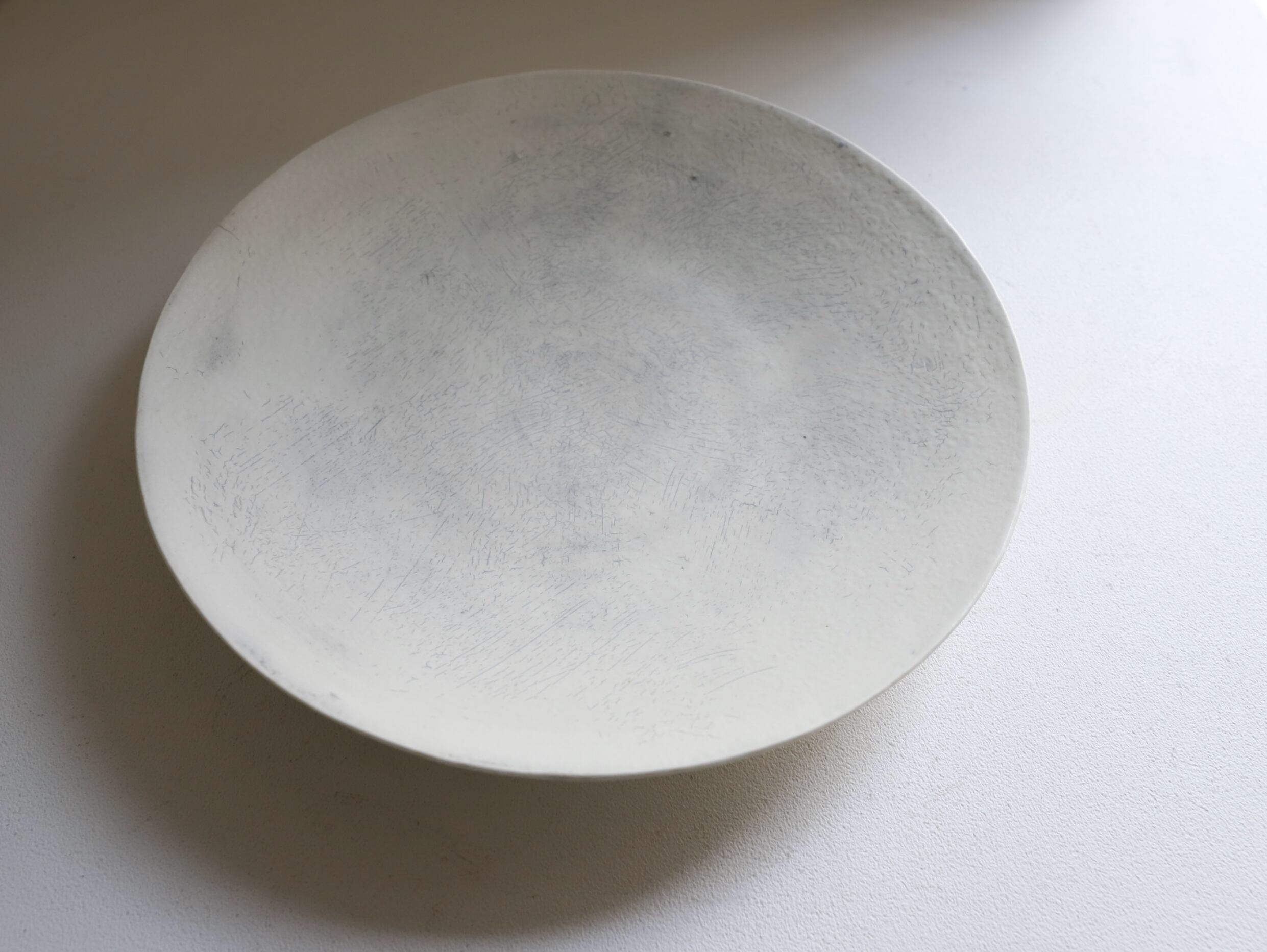 こちらの作品には緩やかなたわみ、やや尖った部分、釉薬の弾けた部分やピンホール(小さな穴)、