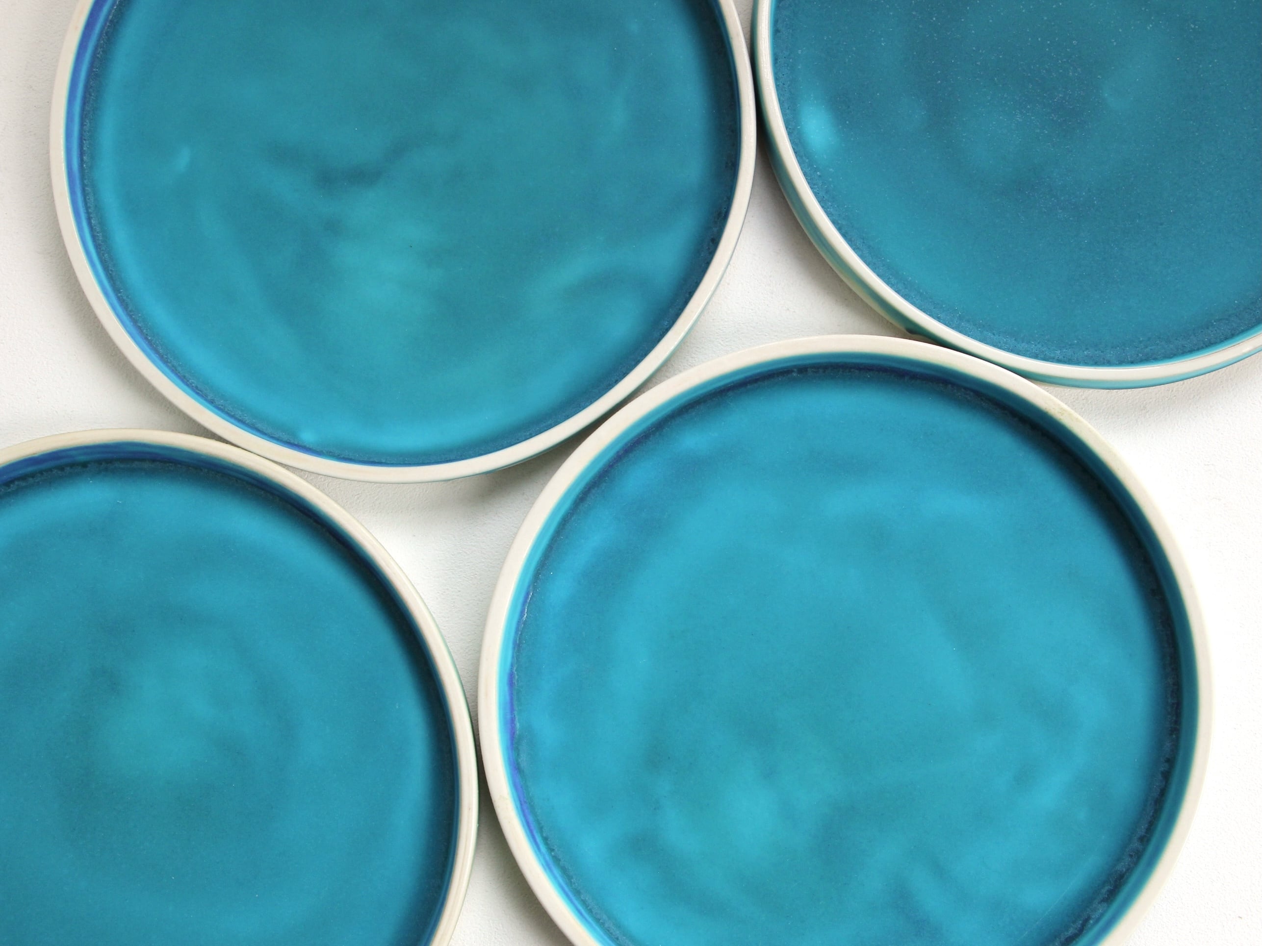 また 作品によっては緩やかなたわみ、やや尖った部分、釉薬の弾けた部分やピンホール(小さな穴)、