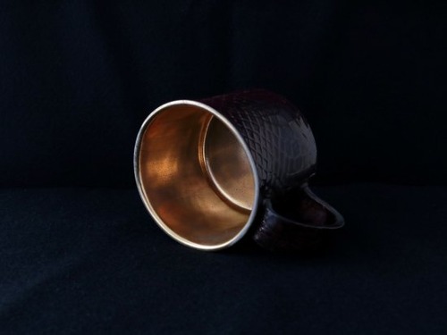 小峰英利さんのラスター彩のマグカップ、クロコ総紋マグ「 QUEEN(王妃)」です。