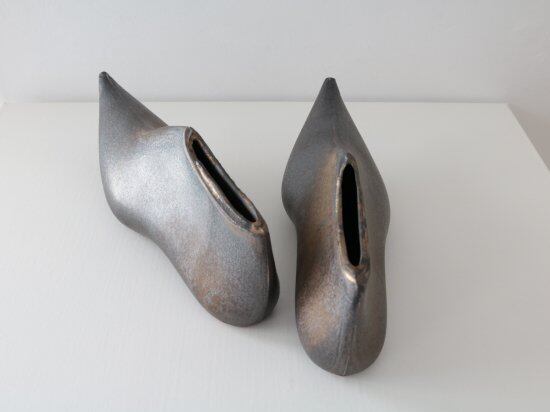小峰英利さんのブロンズシリーズより、靴を象った花器です。